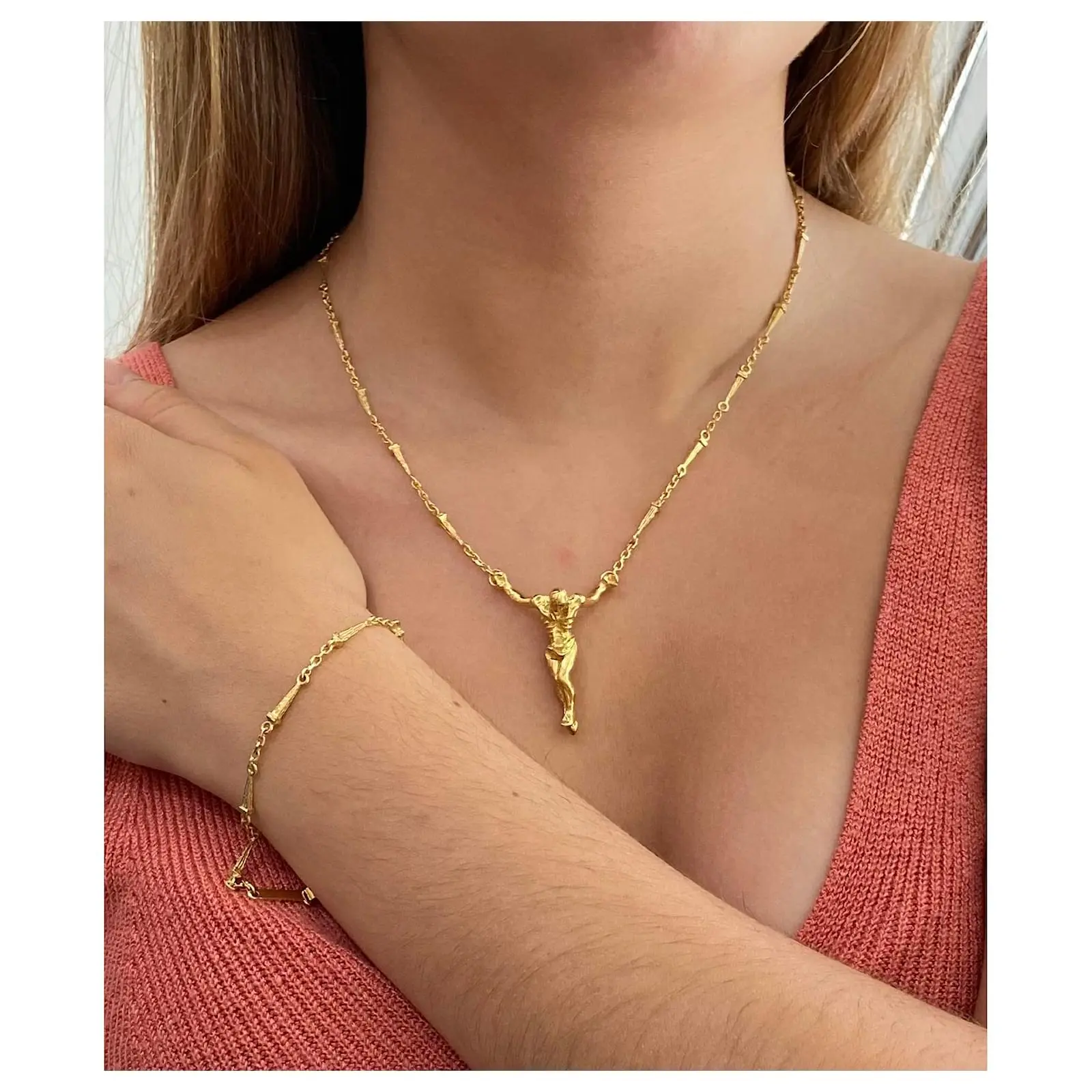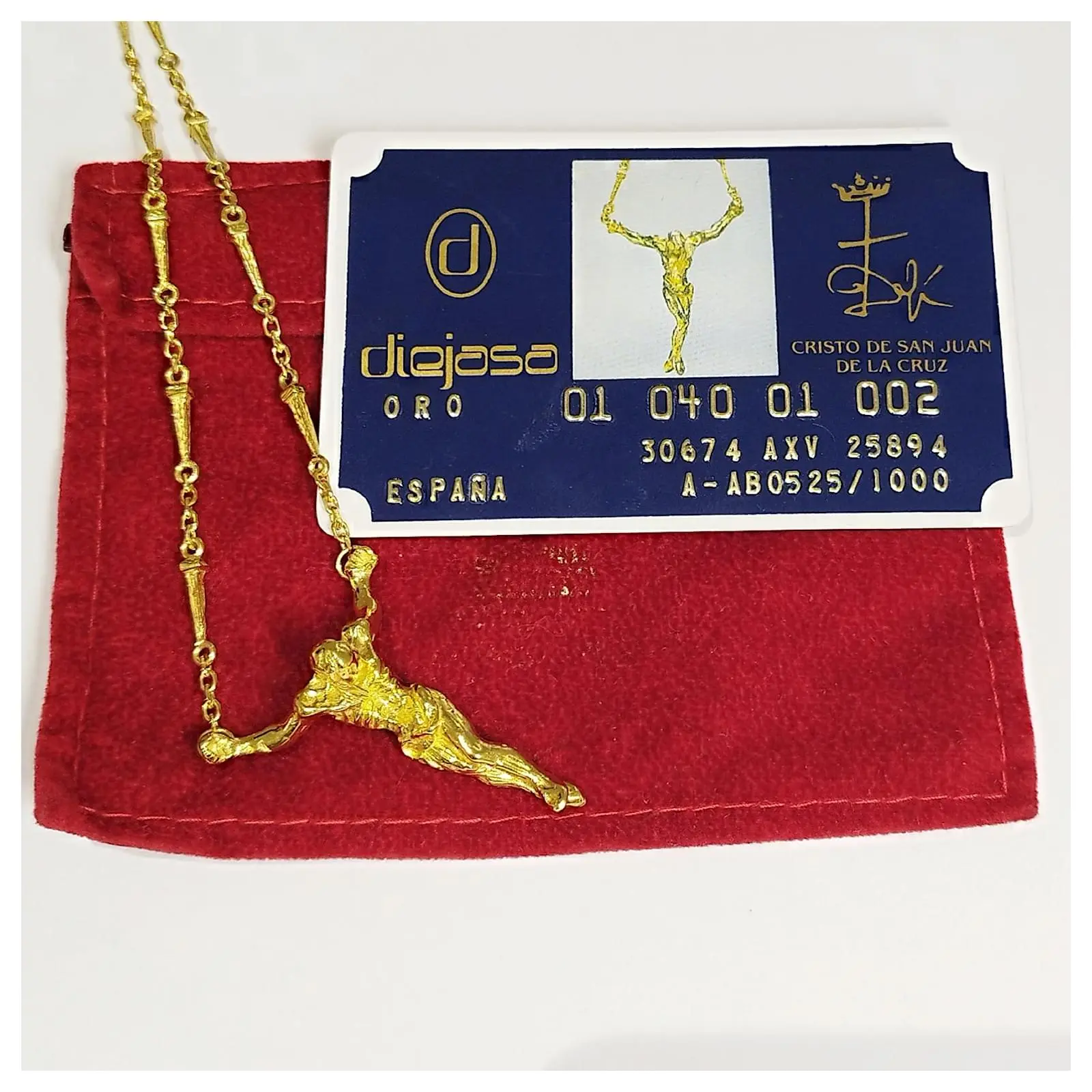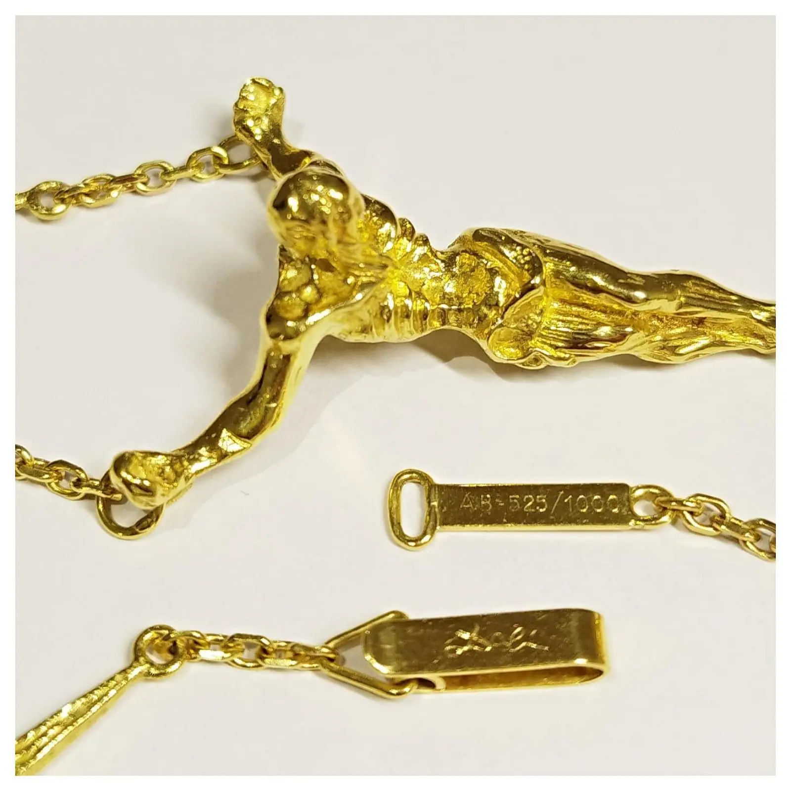 Édition Limitée 18k Or Jaune Salvador Dali Christ Saint Jean sur la Croix Pendentif Collier/Bracelet. Il s’agit d’une pièce numérotée en édition limitée de la 1980S. 1970, numéro 0525 Du 1000 jamais fait.