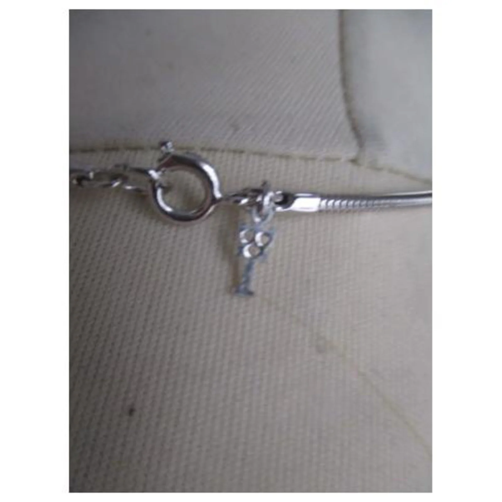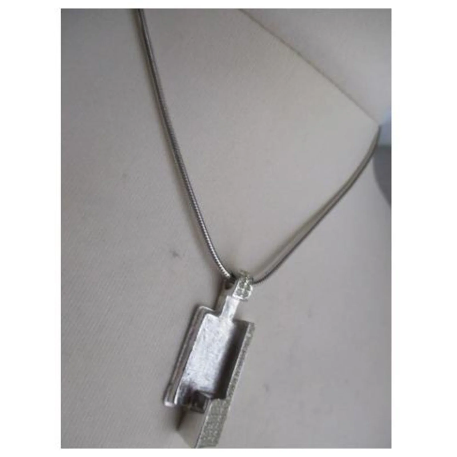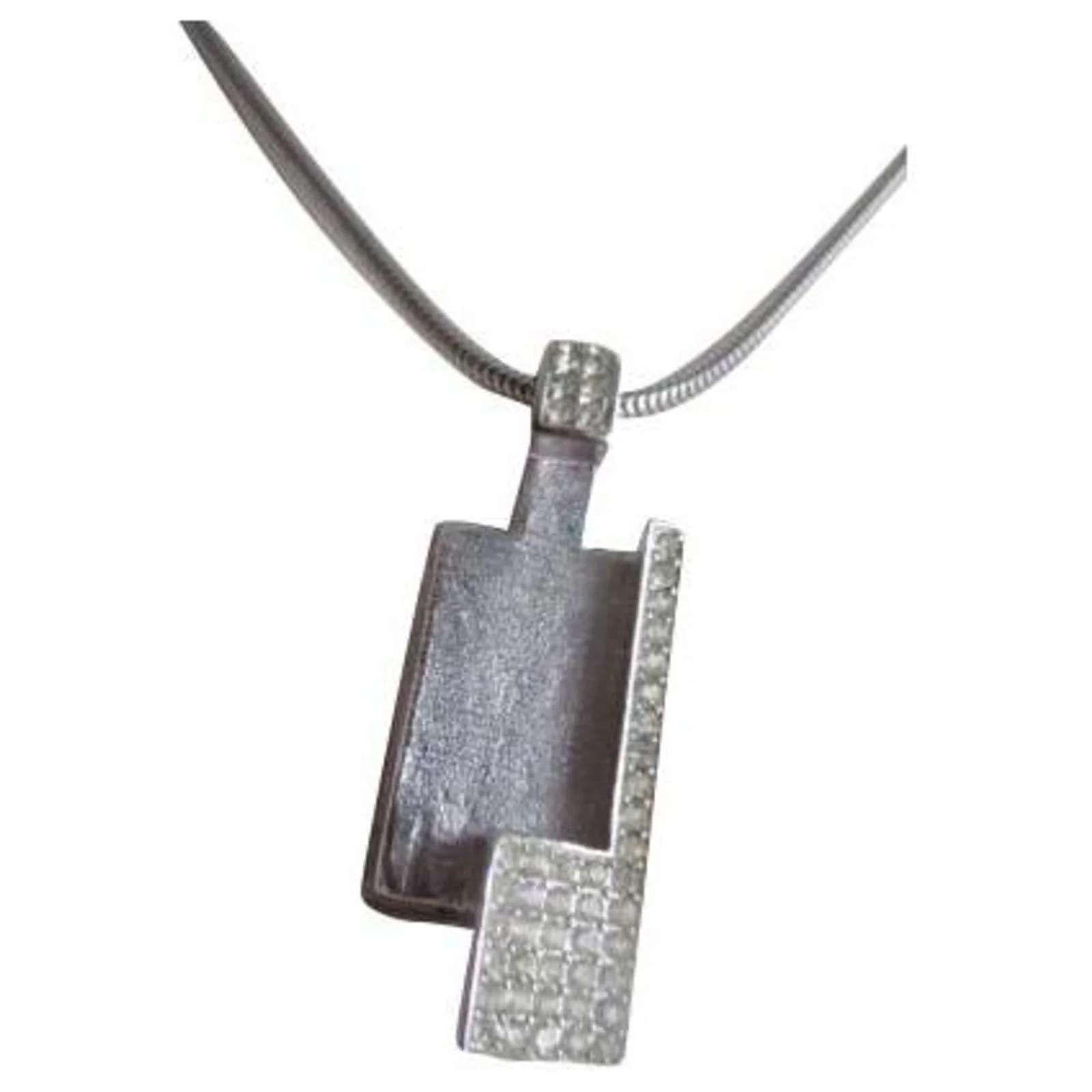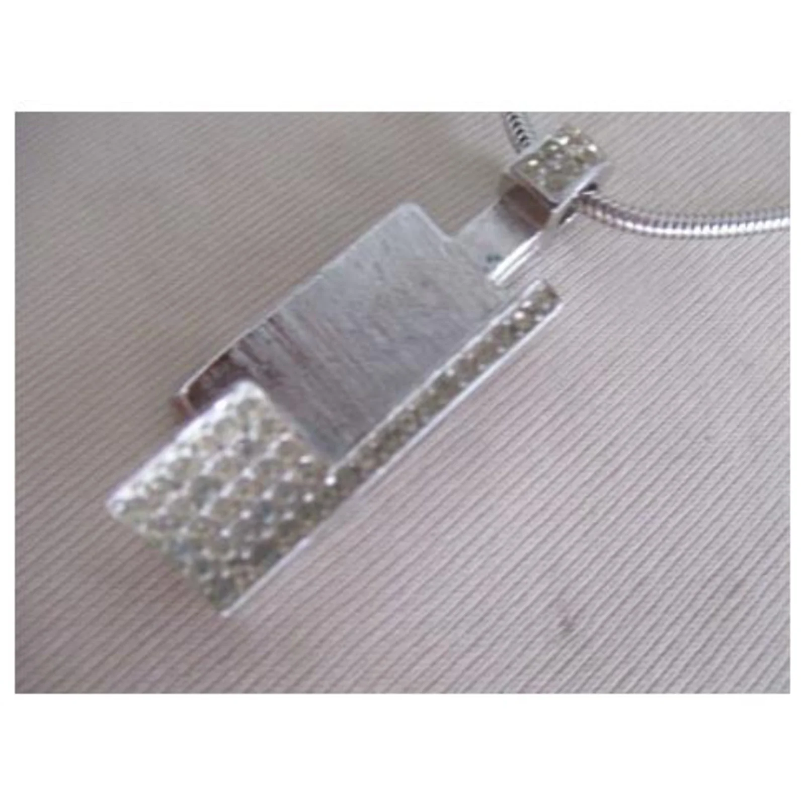 – Sur une chaîne en argent un pendentif en argent dont une partie mat, l’autre est pavée de zircons et aussi sur la bélière.