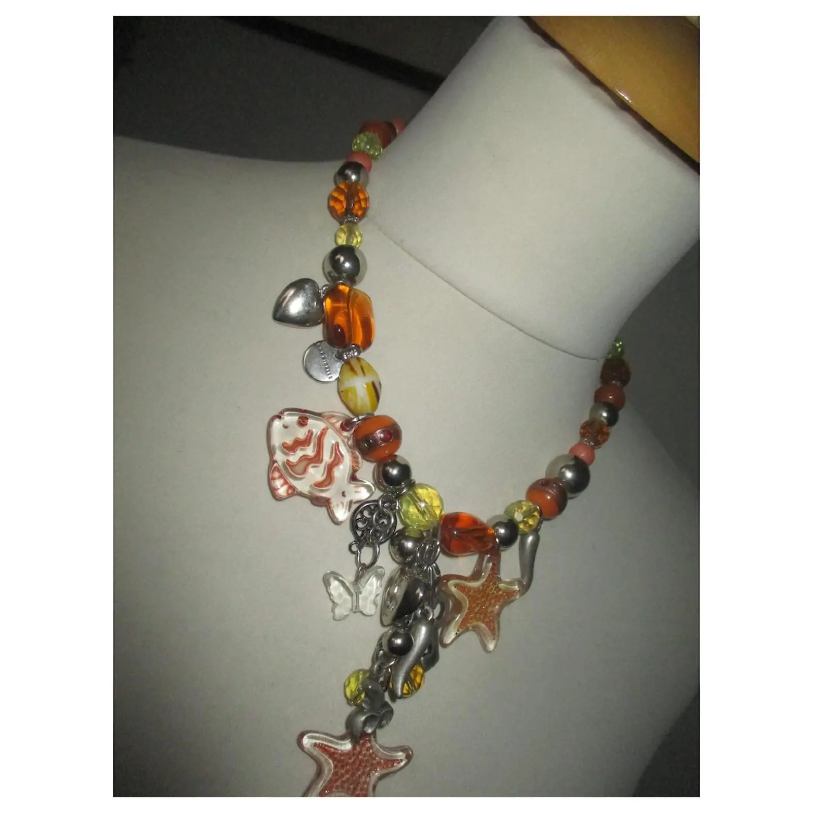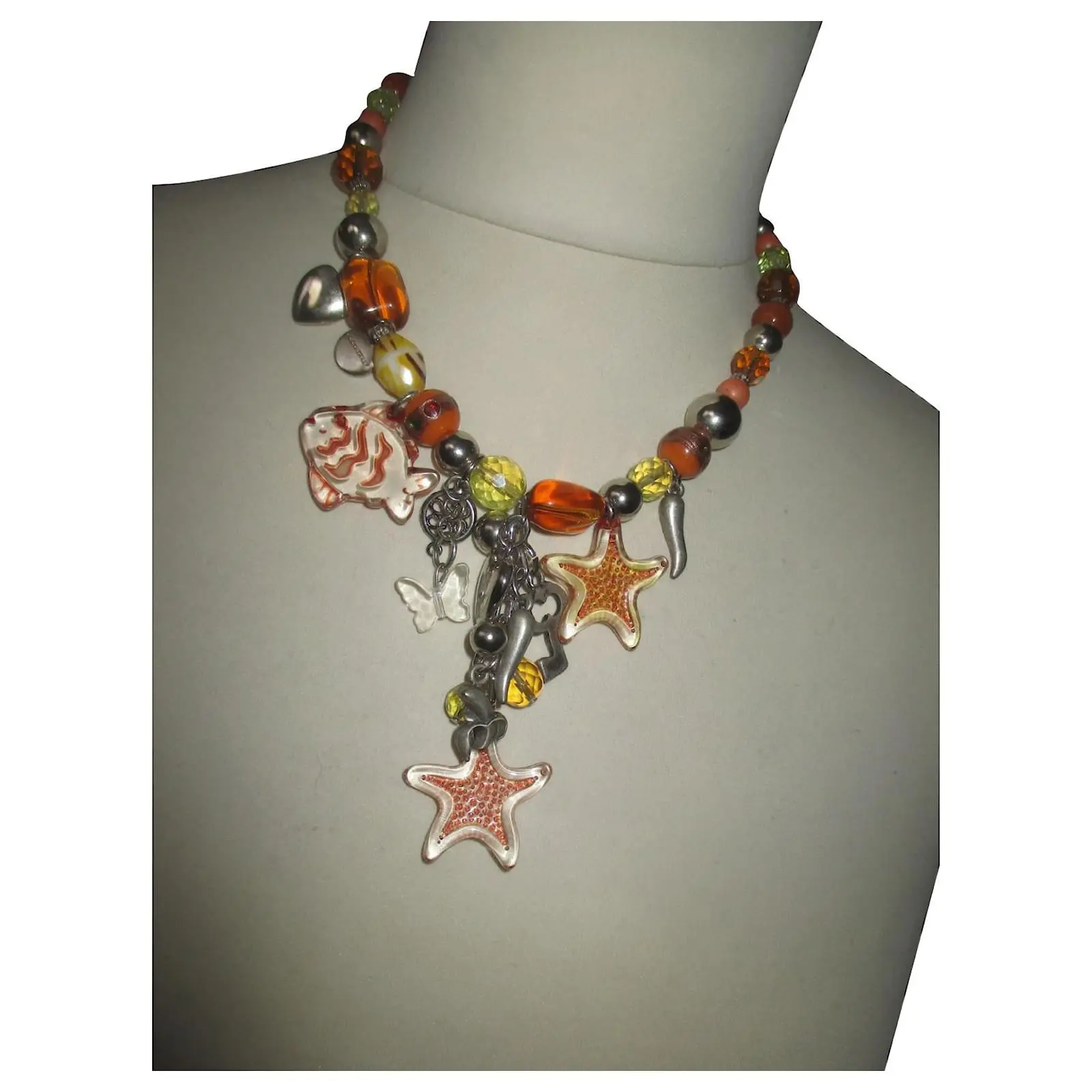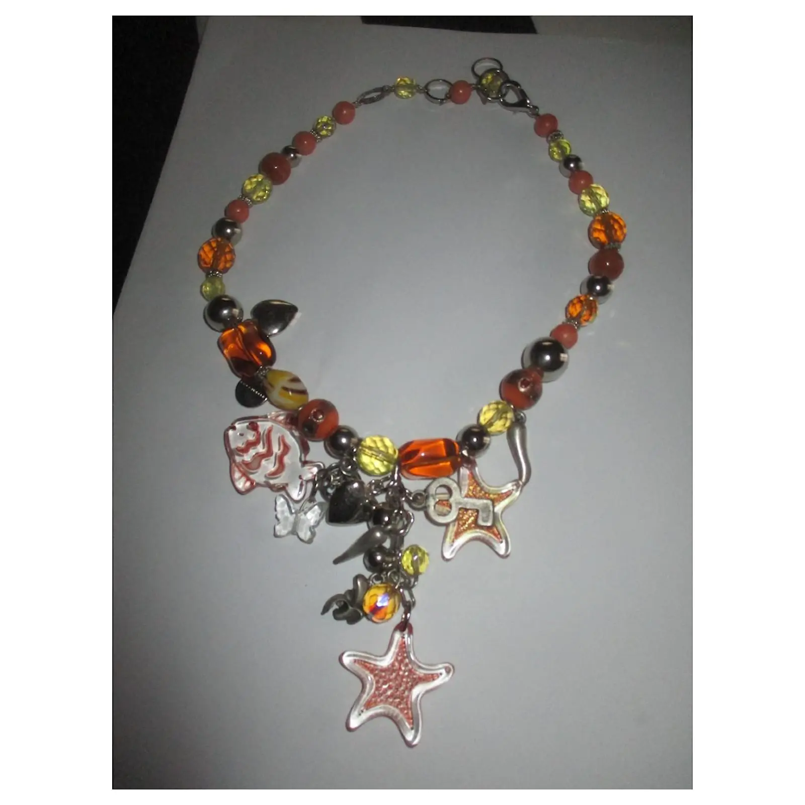– au centre des breloques ; étoile de mer, poisson, papillon, coeur, clé etc… des tons doux.
