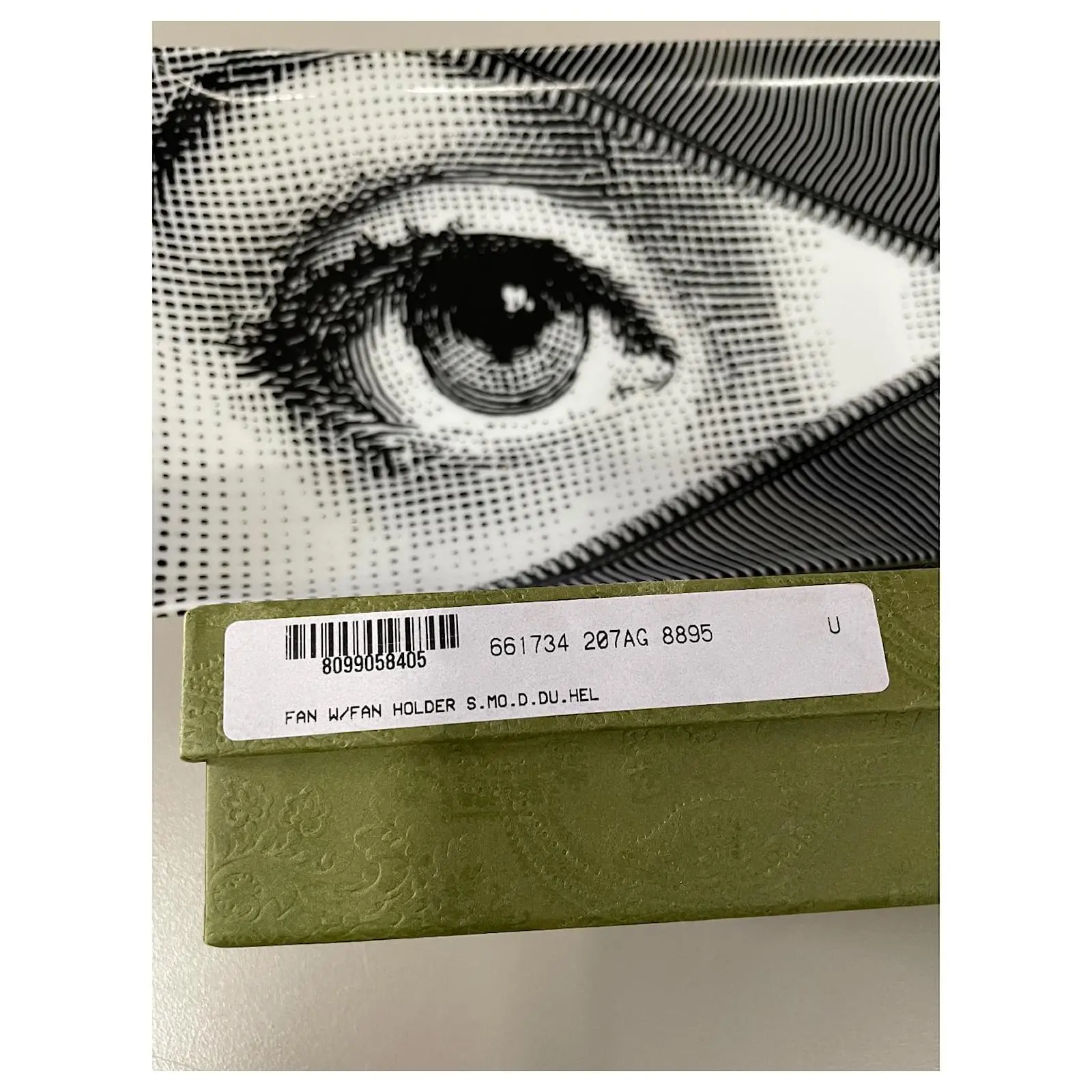 Apparaissant à côté du mot français « Monsieur », L’image ludique de Donald Duck caractérise ce fan. Le personnage légendaire de Disney apparaît dans les dernières collections de Gucci, associé aux imprimés et matières les plus emblématiques de la Maison. Fabriqué à partir de satin de soie et de bois, l’accessoire est complété par un étui assorti en GG Demetra, fabriqué à partir de matières premières sans animaux, principalement issues de sources durables., renouvelable, et sources biosourcées Boîtier en beige et ébène GG Demetra – fabriqué à partir de matières premières sans animaux qui sont principalement issues de sources durables, renouvelable, et sources biosourcées, avec Donald Duck ‘Monsieur’ © Disney détail Éventail avec imprimé coordonné confectionné en satin de soie et bois Fermeture à boutons-pression Éventail fermé par un pompon: 19.7″; sans pompon: 11.6″ Eventail ouvert à pompon: 21.5″ X 19.7″; sans pompon 21.5″ X 11.6″