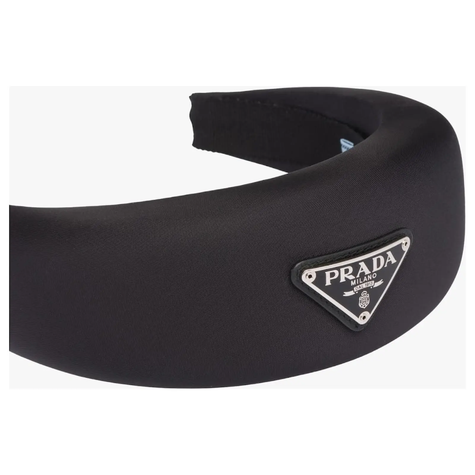 Ce large bandeau en nylon au design enveloppant exprime l’élégance contemporaine et est décoré du logo triangle Prada.
