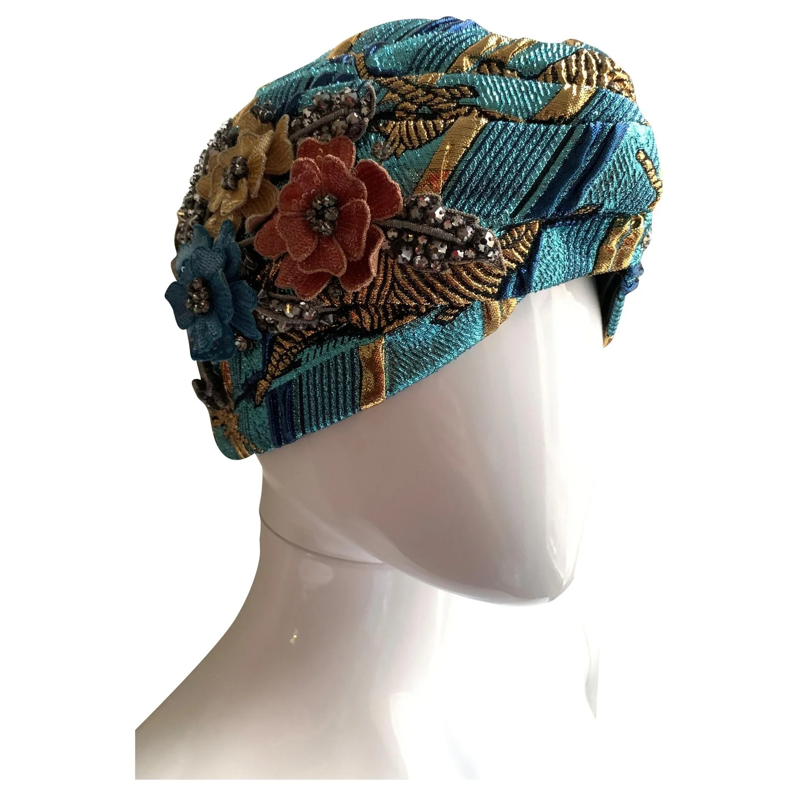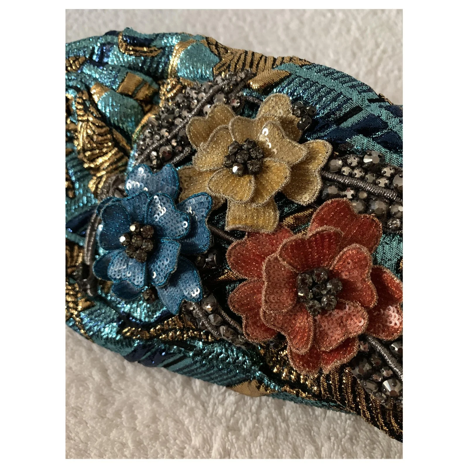 Pièce spéciale du défilé Gucci. Serre-tête en lurex / brocart de soie, plusieurs couleurs avec des ornements de fleurs sur les côtés. matière stretch, Légèrement rembourré, doublé de soie. Size M, 57cm. Utilisé une seule fois pour le défilé de mode, dans de très bonnes conditions, juste quelques fils tirés mais pas évident lorsque l’article est porté. Article de défilé de mode, unique en son genre.