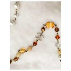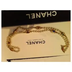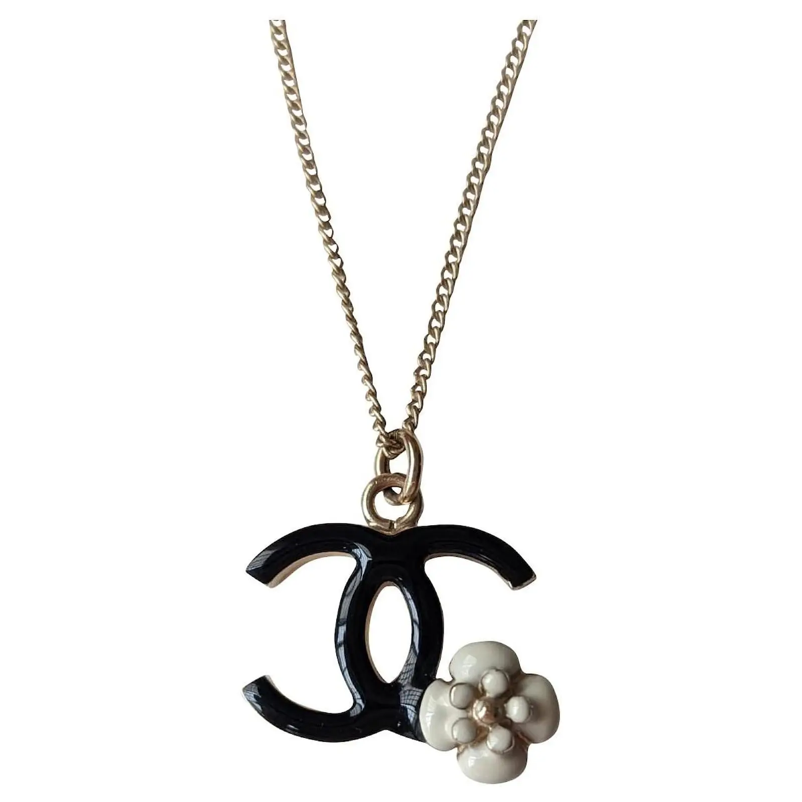 100% authentique très bon état collier Chanel logo CC collier avec fleur de camélia.