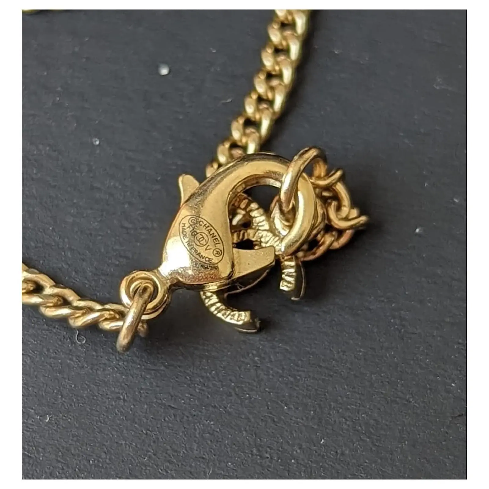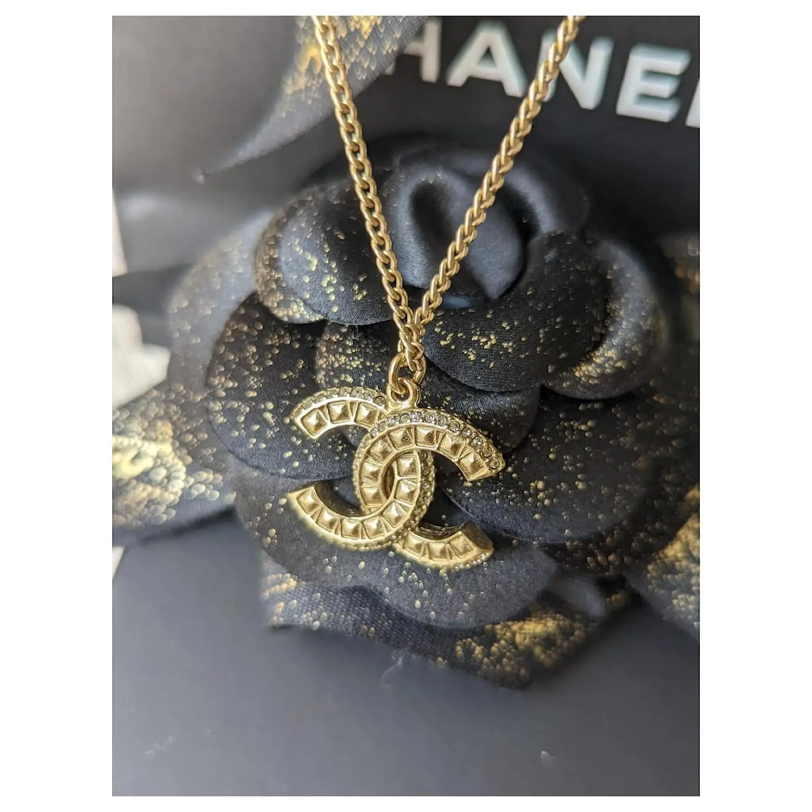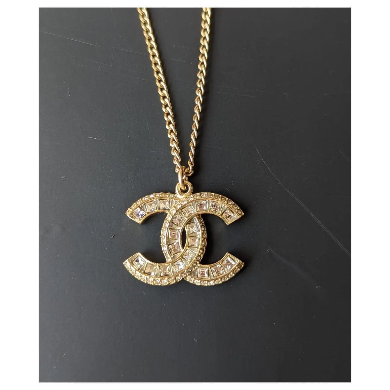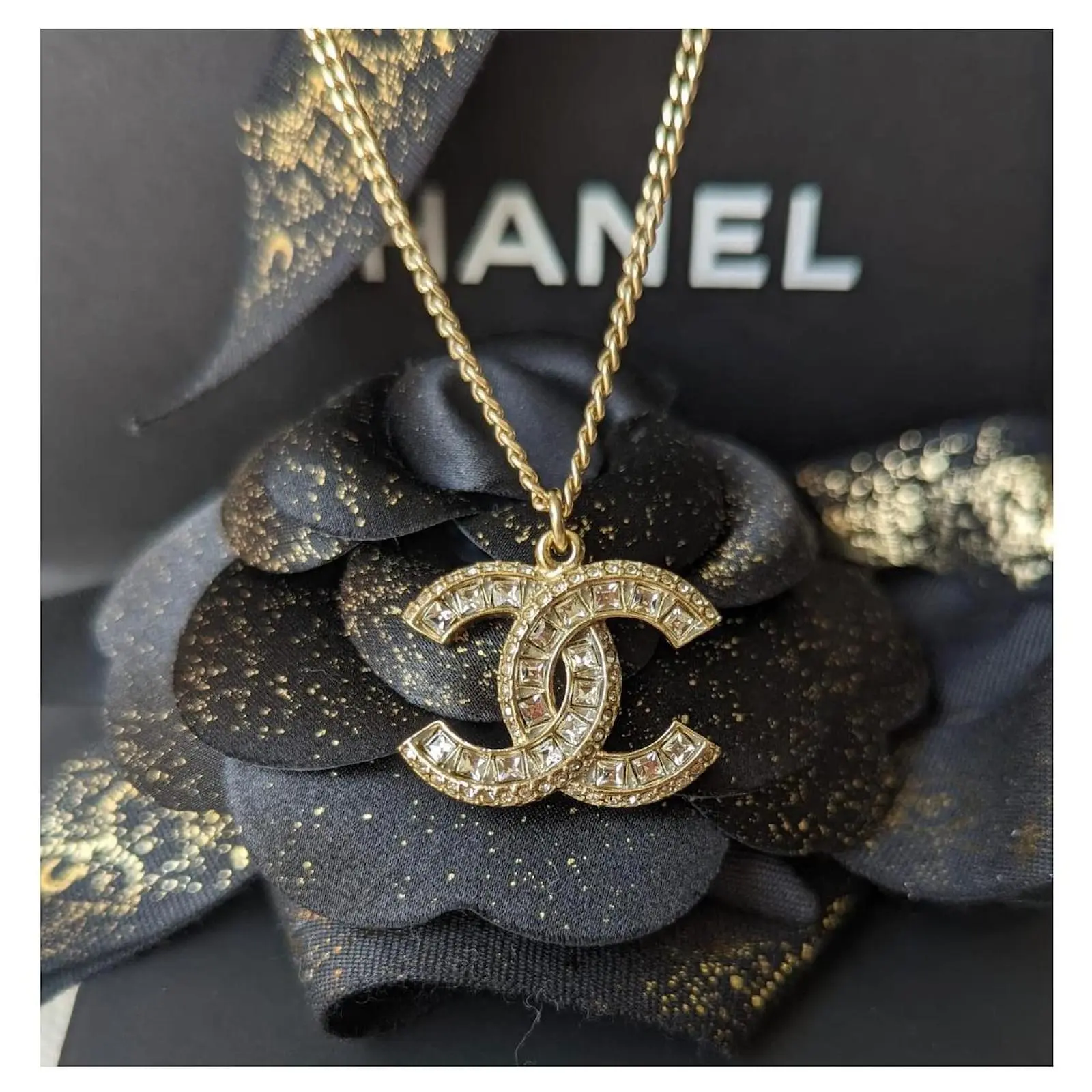 100% authentique collier en cristal avec logo Chanel CC dans un ton matériel doré champagne.