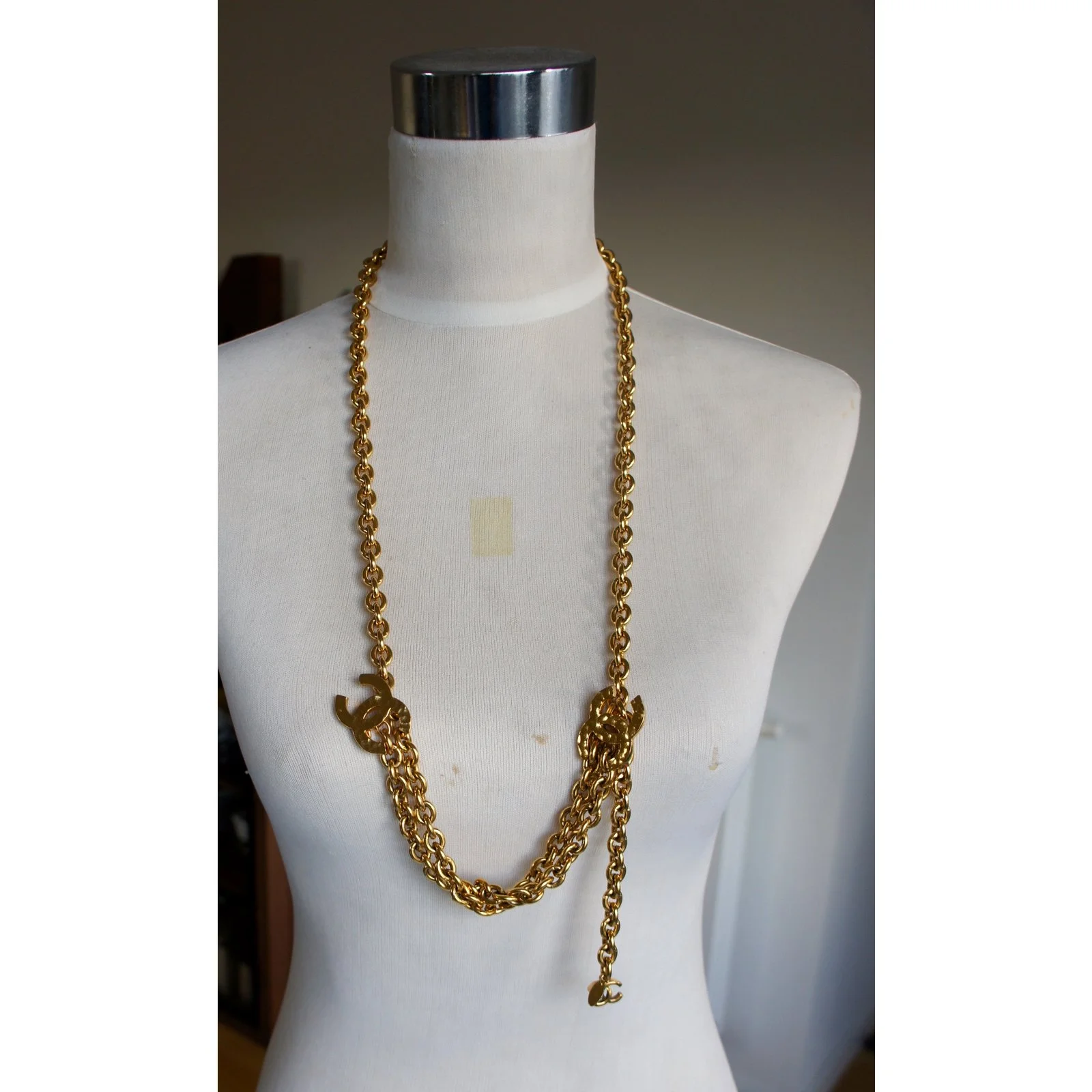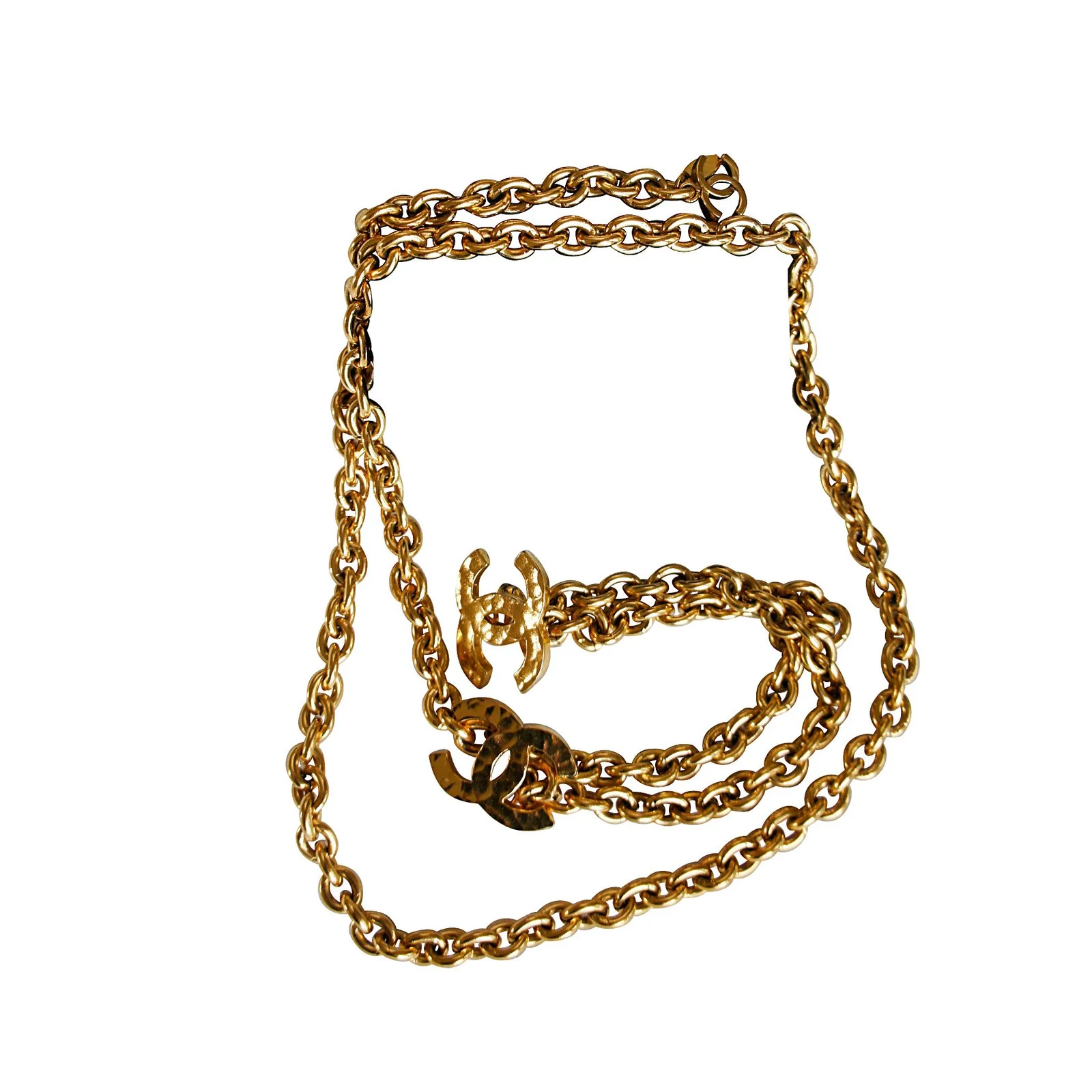 Magnifique sautoir – ceinture Chanel en métal doré . logo présent . livré avec sa boite Chanel . Bon état car porté mais la dorure est très belle.Modèle vintage.