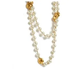 Elastique cheveux CHANEL, avec une perle nacre oversize, logo doré double C sur la perle.Modèle du défilé. Ce modèle peut se porter comme un bracelet aussi. Poinçon Chanel présent derrière la perle.Quelques rayures