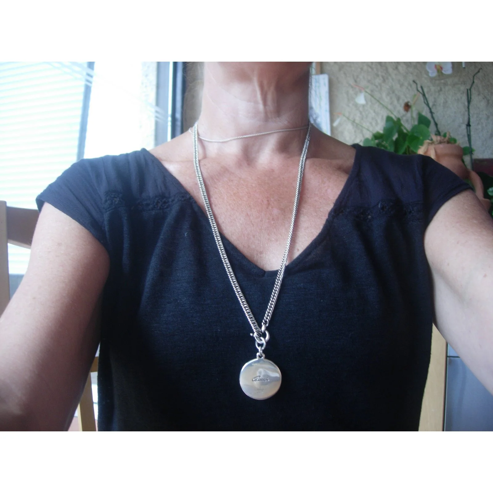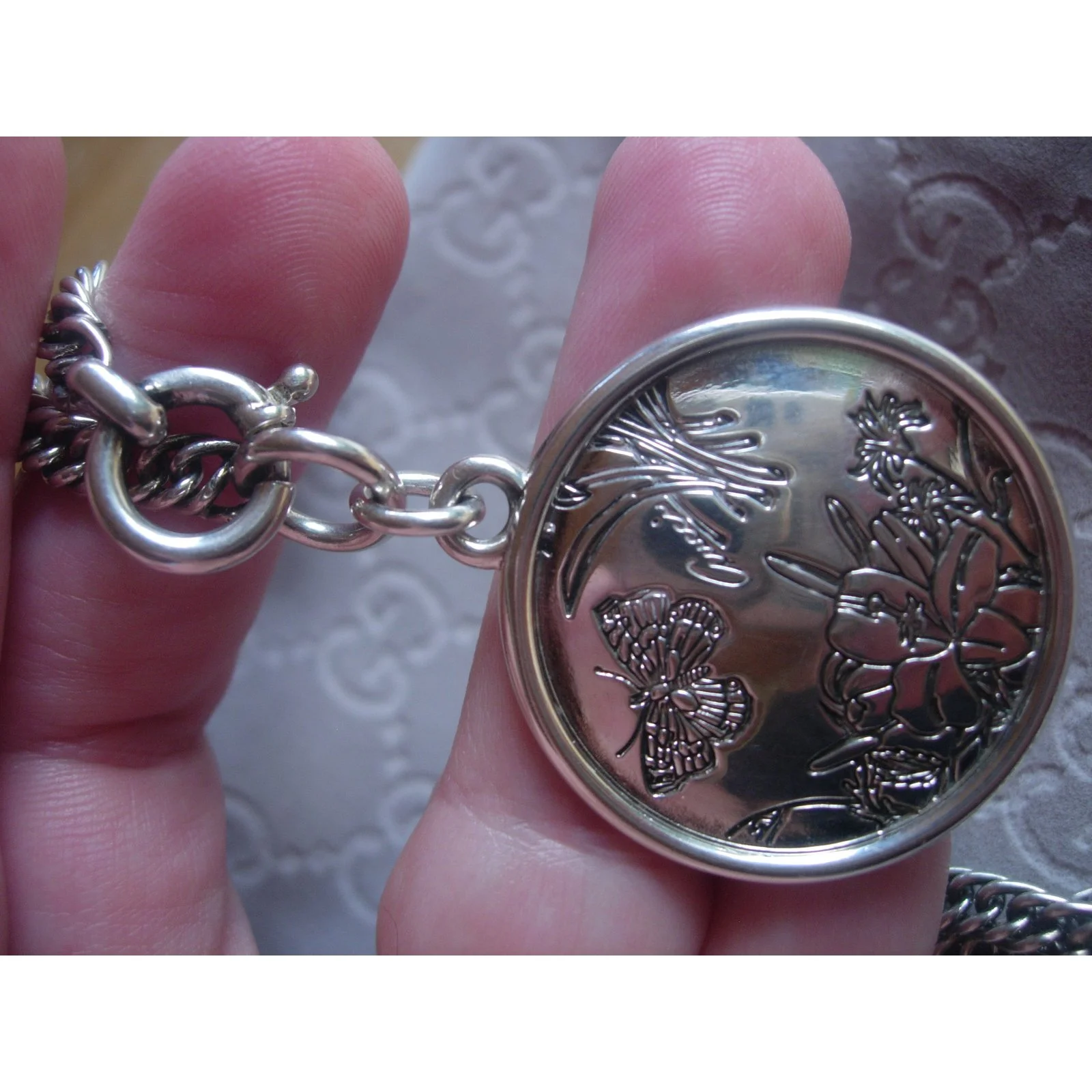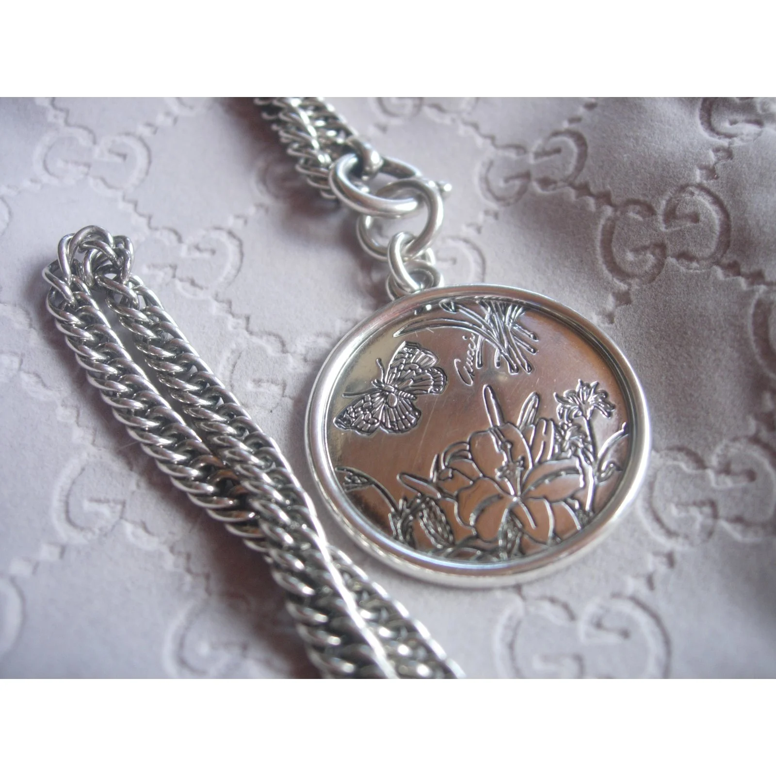 Grand sautoir Gucci Flora en argent massif 925. Si vous avez des questions, n’hésitez pas.Veuillez voir mes autres bijoux à vendre. Je n’ai pas la facture mais he suis une vendeuse de confiance. Je ne porte pas et je ne supporte pas le toc! Merci et bon shopping.