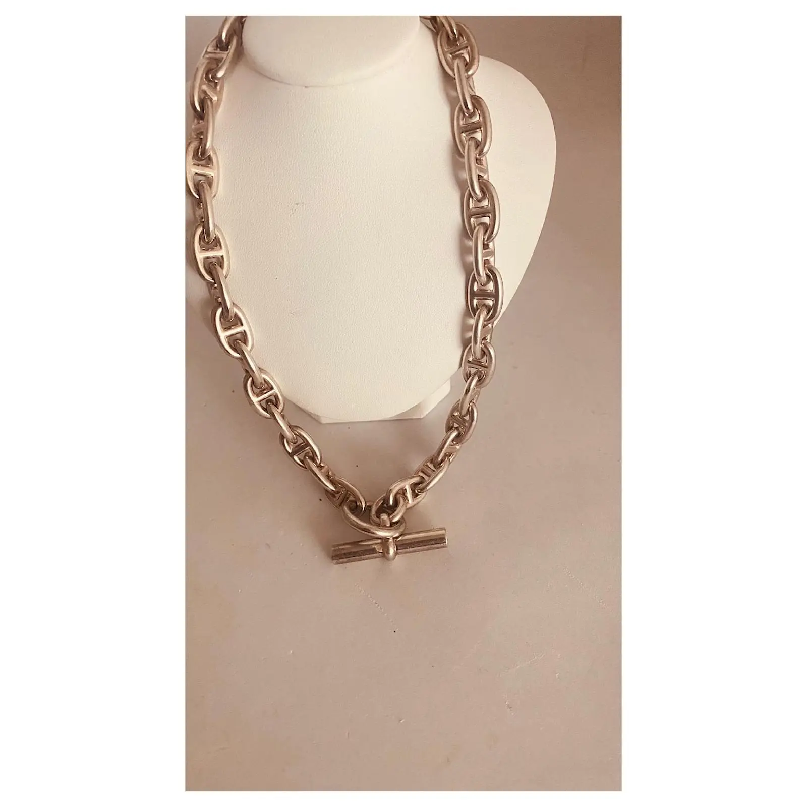 Collier Hermès chaîne d’ancre, argent 925, longueur 43 cm, poids environ 114 grammes, époque 1980 signe d’usage normal sur l’argent reste en très bon état