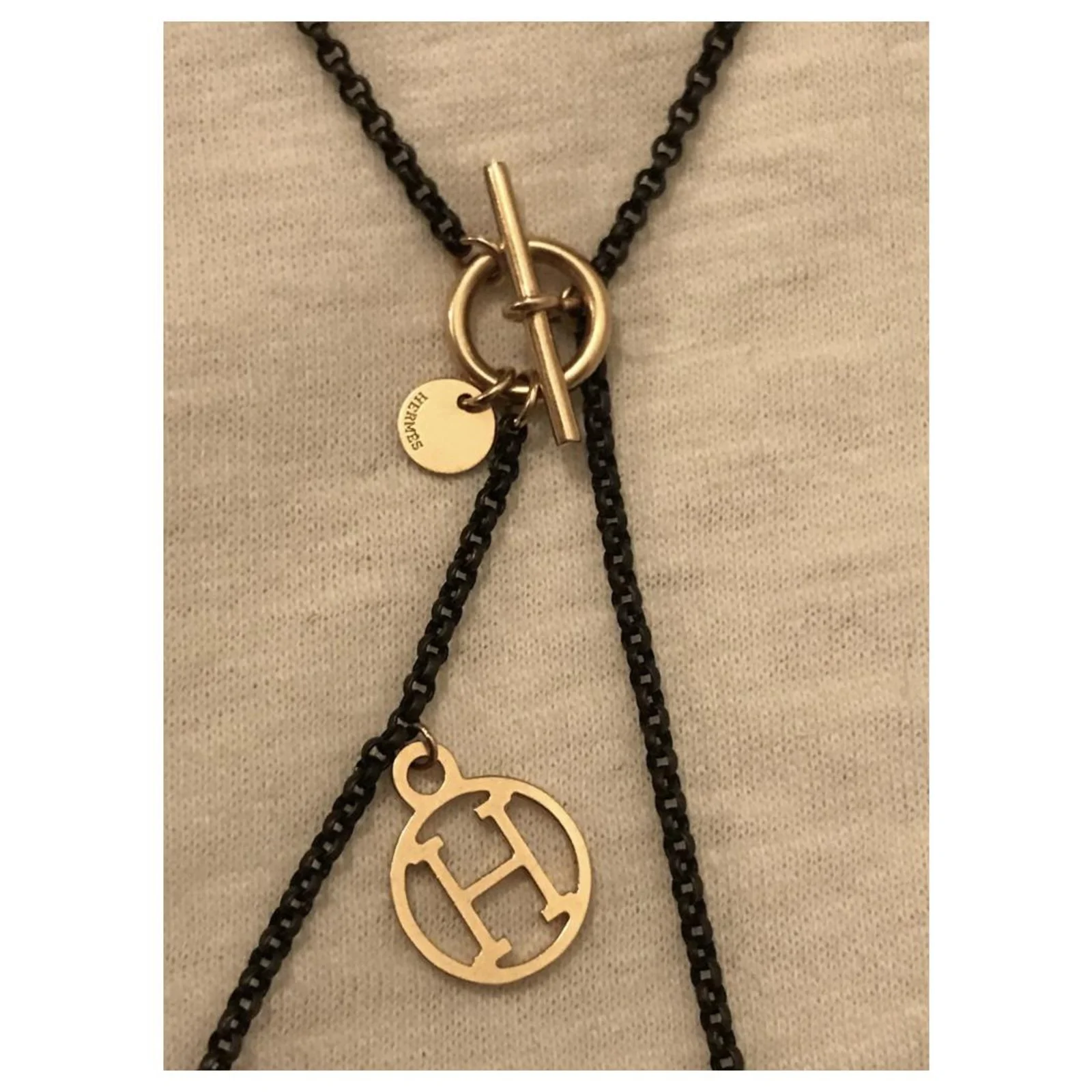 Magnifique et tres rare sautoir hermes en or rose et argent noir