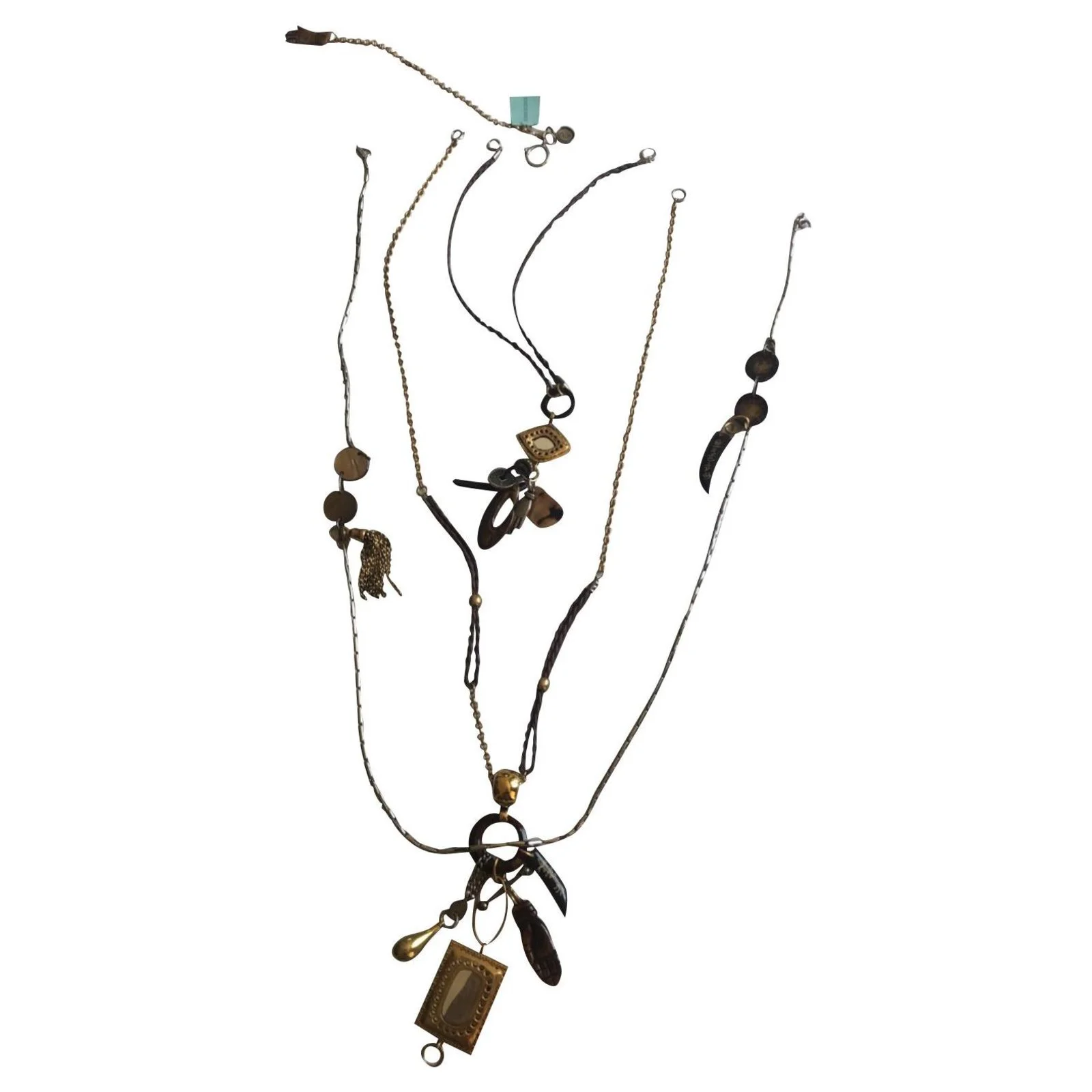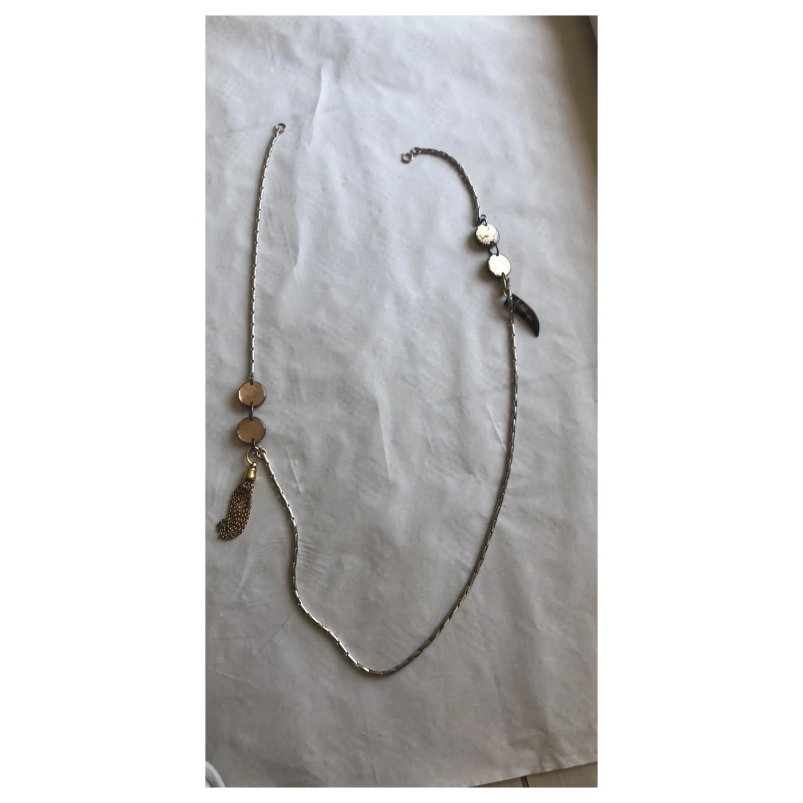 Sautoir Réminiscence, 3 sautoirs en un qui peuvent être portés indifféremment les uns des autres. Une petite chaine avec une main pend dans le dos. Article avec étiquette, valeur du neuf 780e.