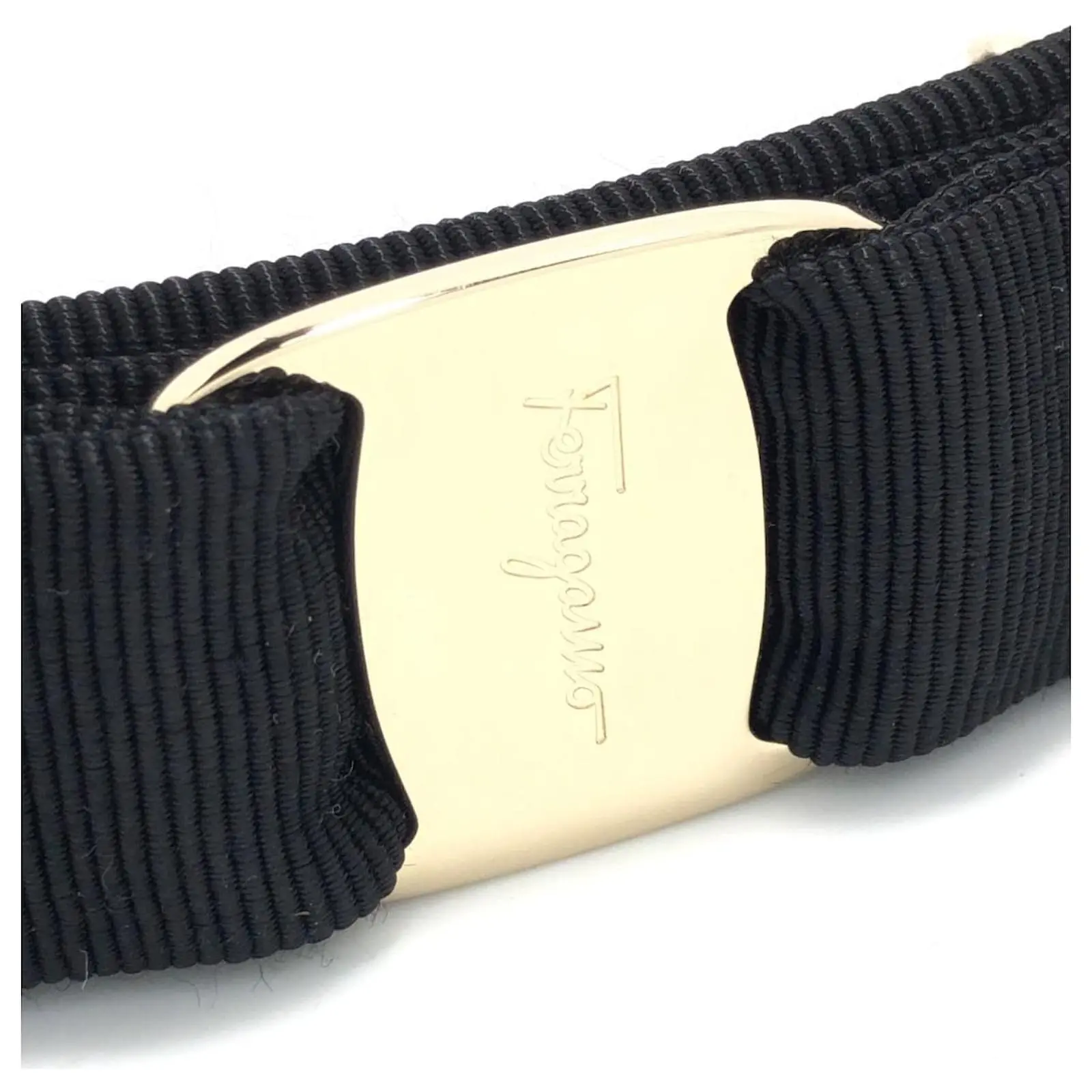 Cet accessoire pour cheveux appartient à la catégorie des accessoires pour cheveux et est de la marque Salvatore Ferragamo. Il présente une combinaison de couleurs noir et or et met en valeur le design emblématique de Vara. L’accessoire est fait de fibre chimique et de matériau métallique, offrant un look élégant et élégant pour la coiffure.