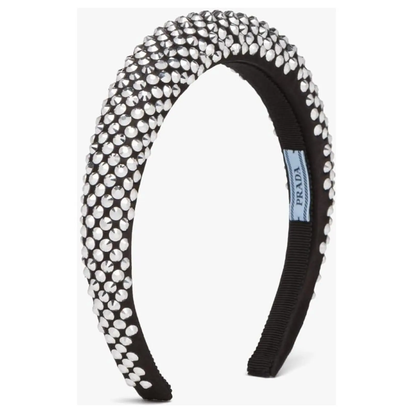 Une pluie de cristaux ton sur ton ajoute une touche éblouissante à ce, bandeau arrondi en satin brillant.