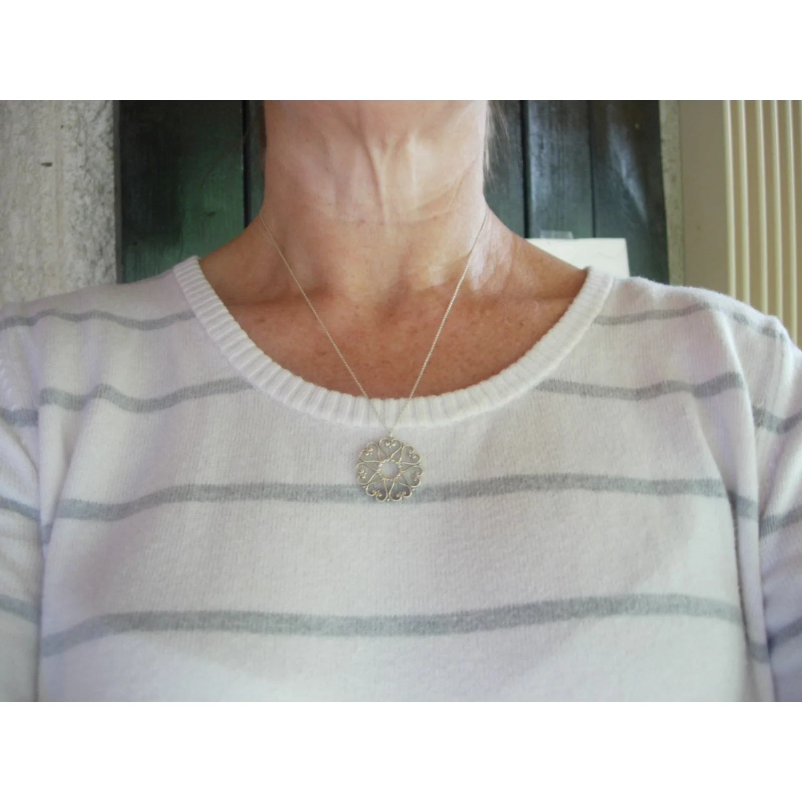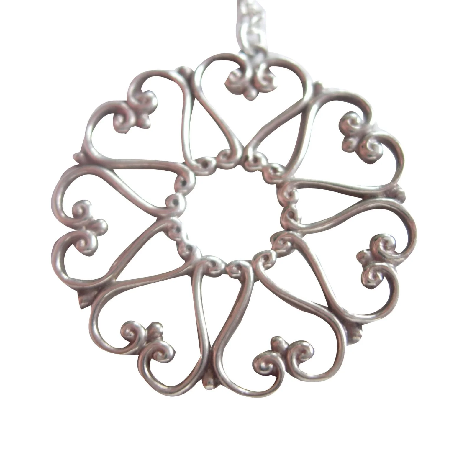 Joli pendentif de la gamme Goldoni dessiné par Paloma PIcasso pour Tiffany & Co. en argent massif 925. Le pendentif mesure 25mm en diamètre et la chaîne mesure 47,5 cm en longueur. Il vient avec sa pochette d’origine. Je suis une vendeuse de confiance. Je ne porte pas et je ne supporte pas le toc. Veuillez voir mes autres bijoux à vendre. Merci et bon shopping!
