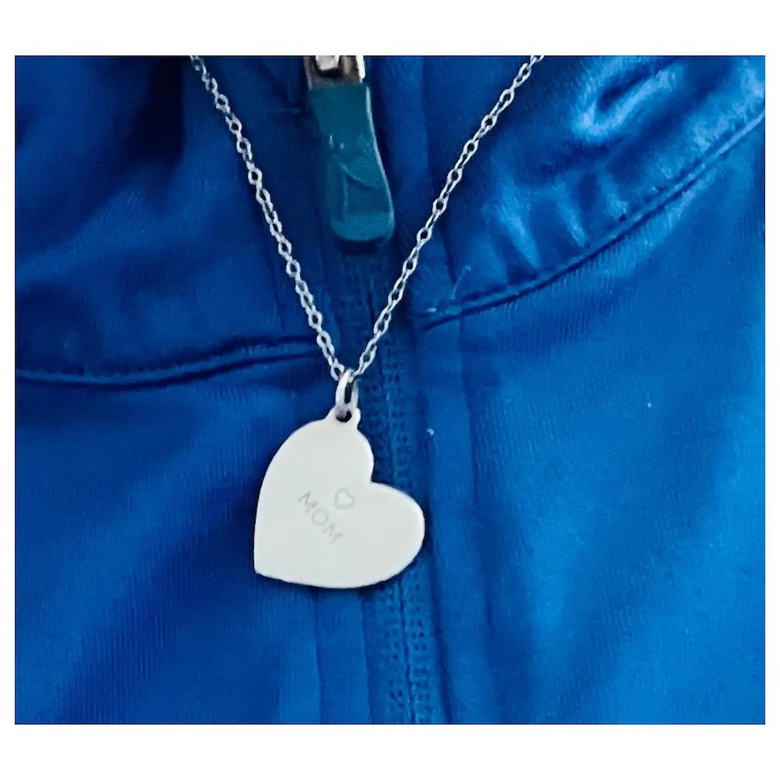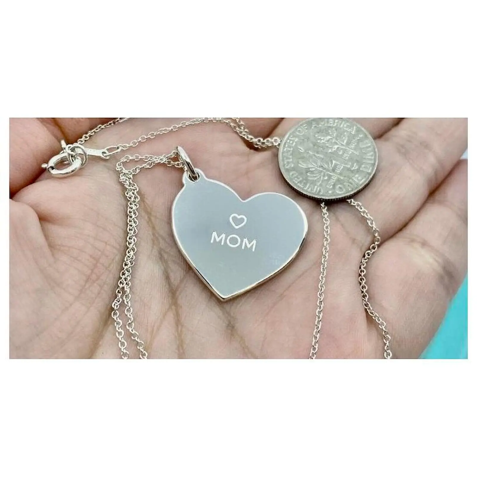 Un pendentif Tiffany de grande taille gravé du mot maman d’un côté et du timbre Tiffany de l’autre avec 925 pour l’argent sterling