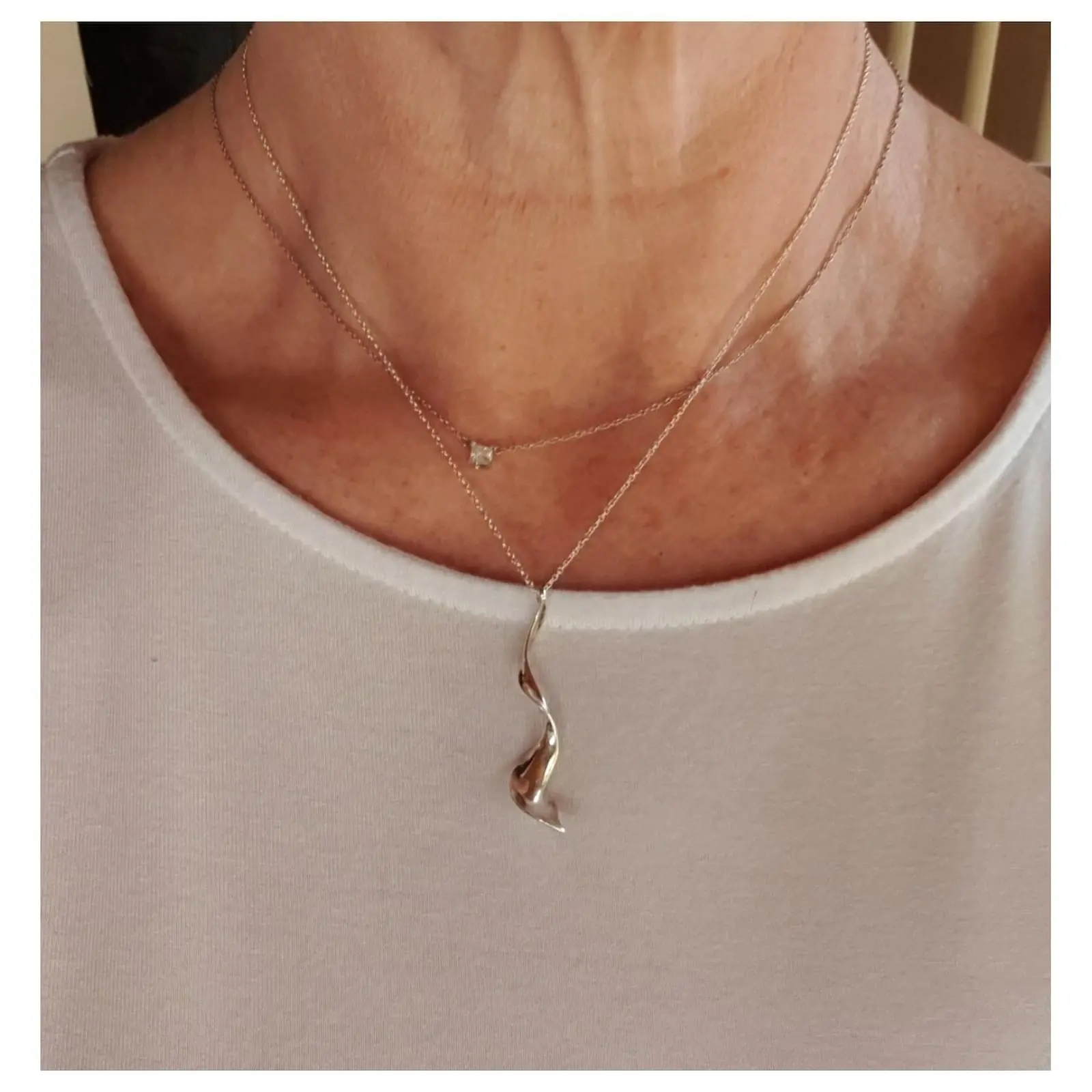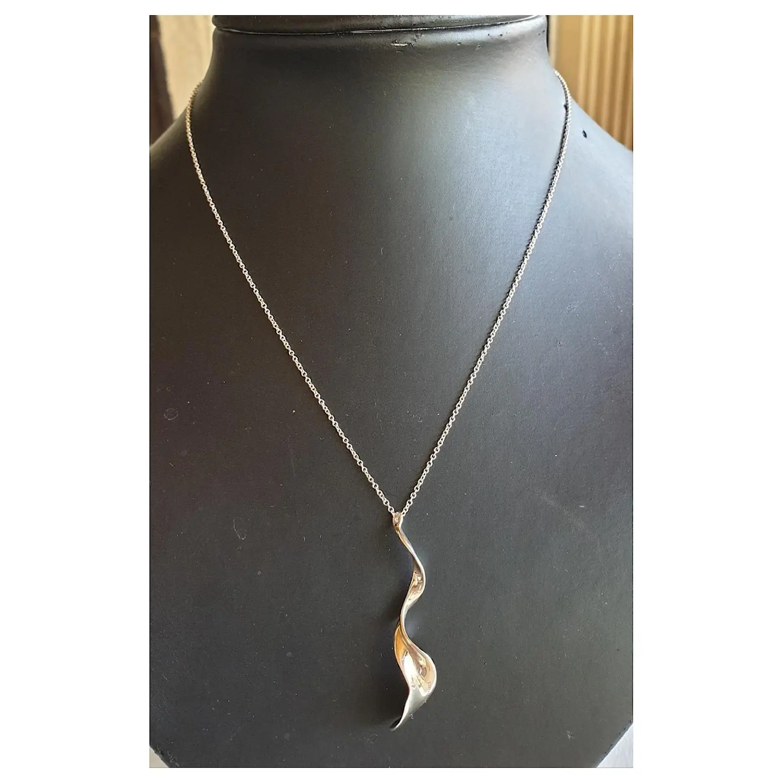Collier pendentif Tiffany & Co. dessiné par l’architecte Frank Gehry de la gamme Orchidée en argent massif 925. Longueur 40,5 cm. Très belle pièce qui est difficile à trouver. Veuillez voir mes autres bijoux à vendre. Merci et bon shopping.