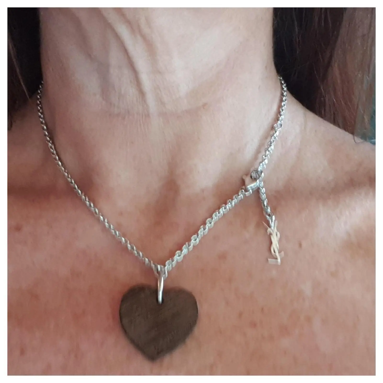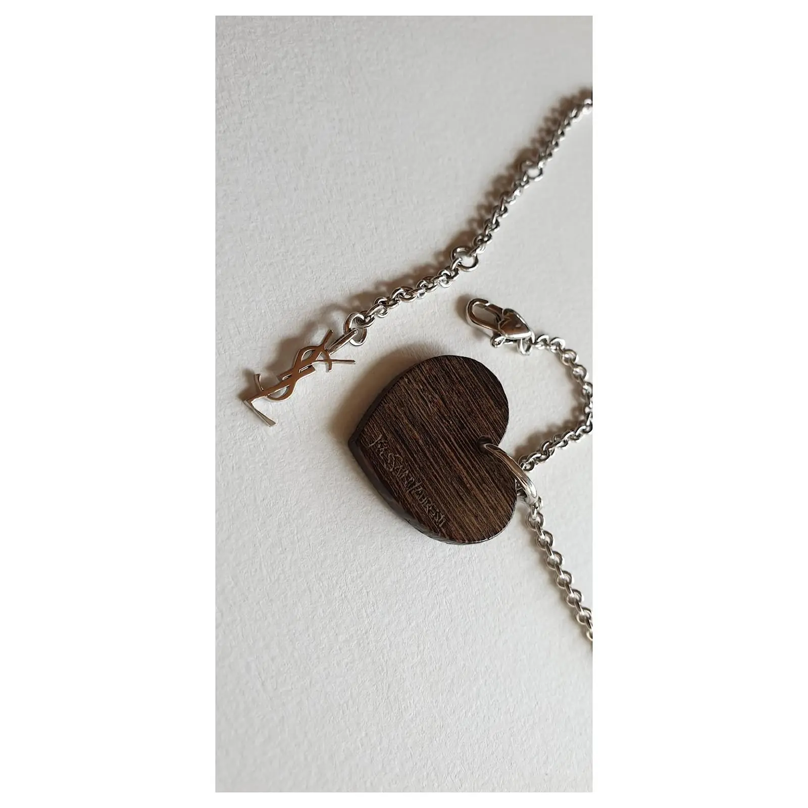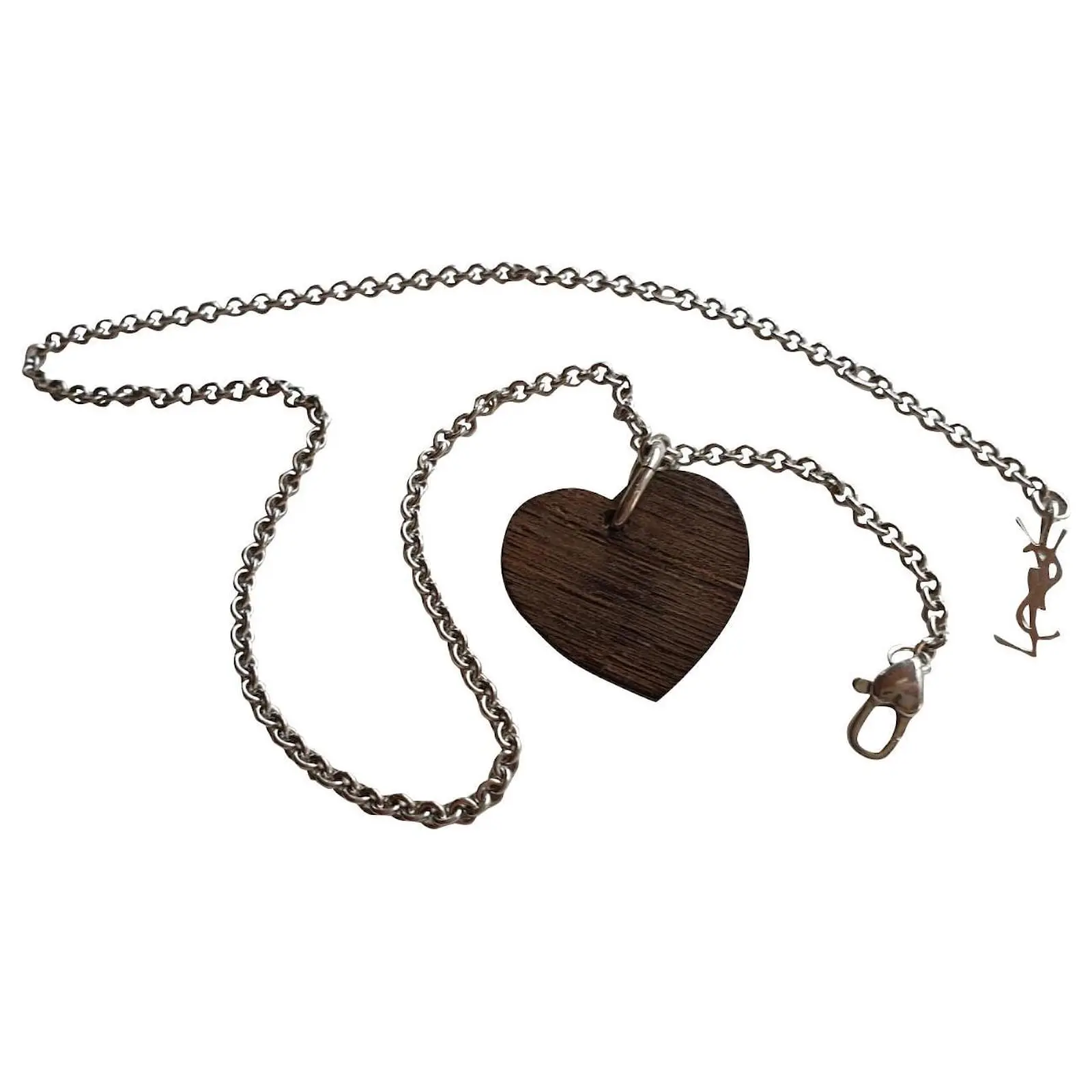 Yves Saint Laurent Pendentif Cœur En Bois Et Argent 925 Marron Argenté