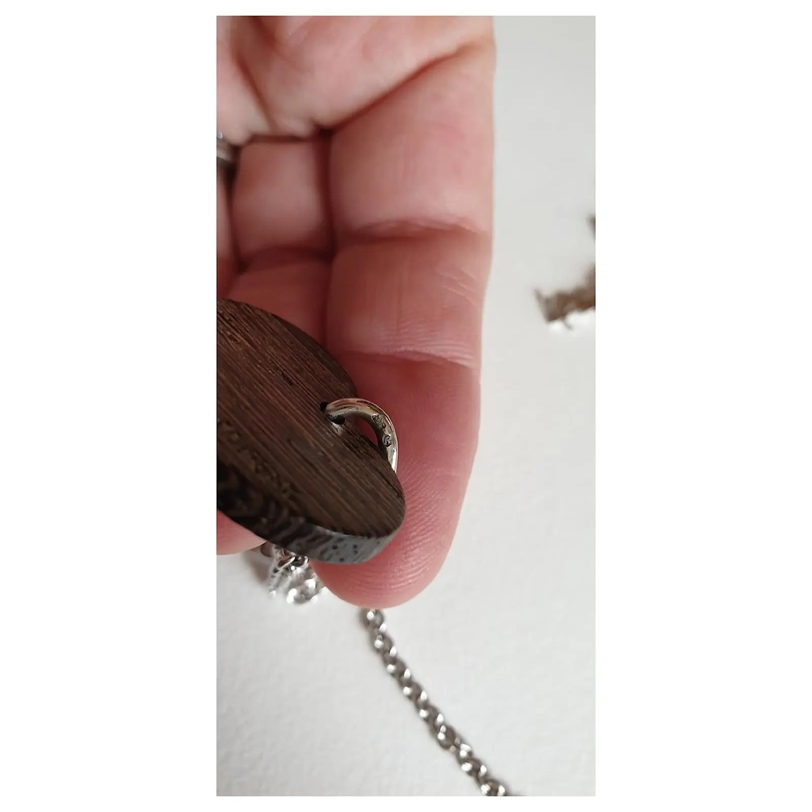 Magnifique et rare Collier pendentif Yves Saint Laurent en argent massif 925 et bois. Trois longuers: 39, 42 et 45 cm avec son joli fermoir cœur et logo. J’ai aussi le bracelet qui va avec à vendre. Veuillez voir mes autres bijoux à vendre. Merci et bon shopping.
